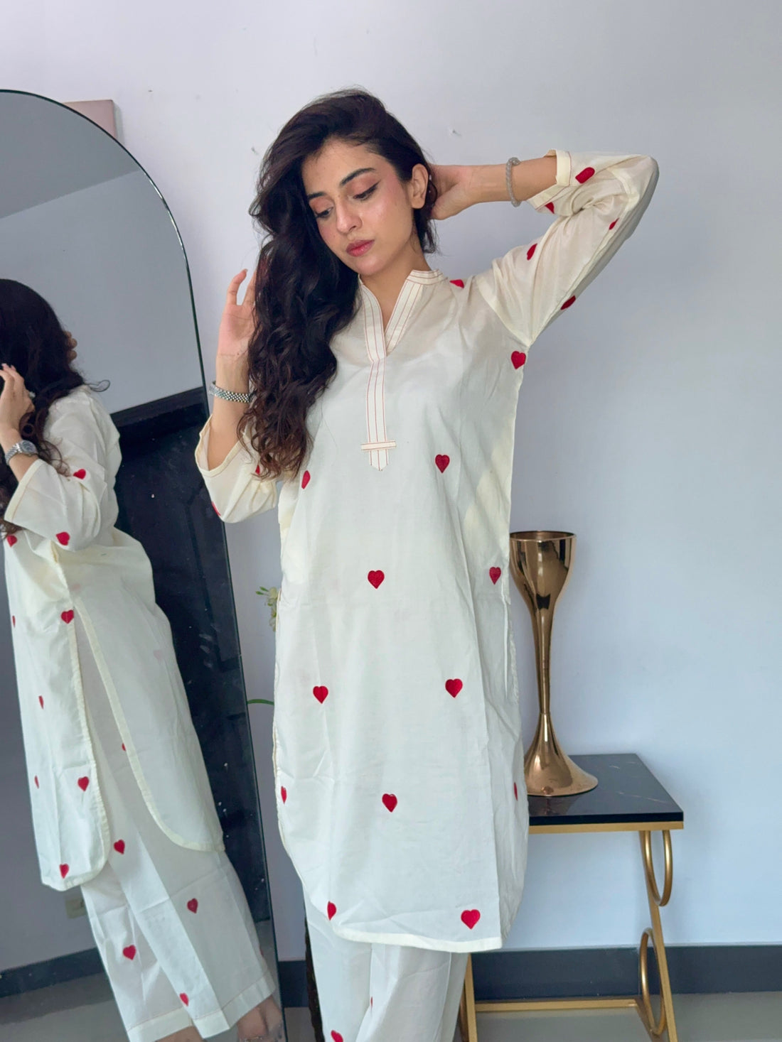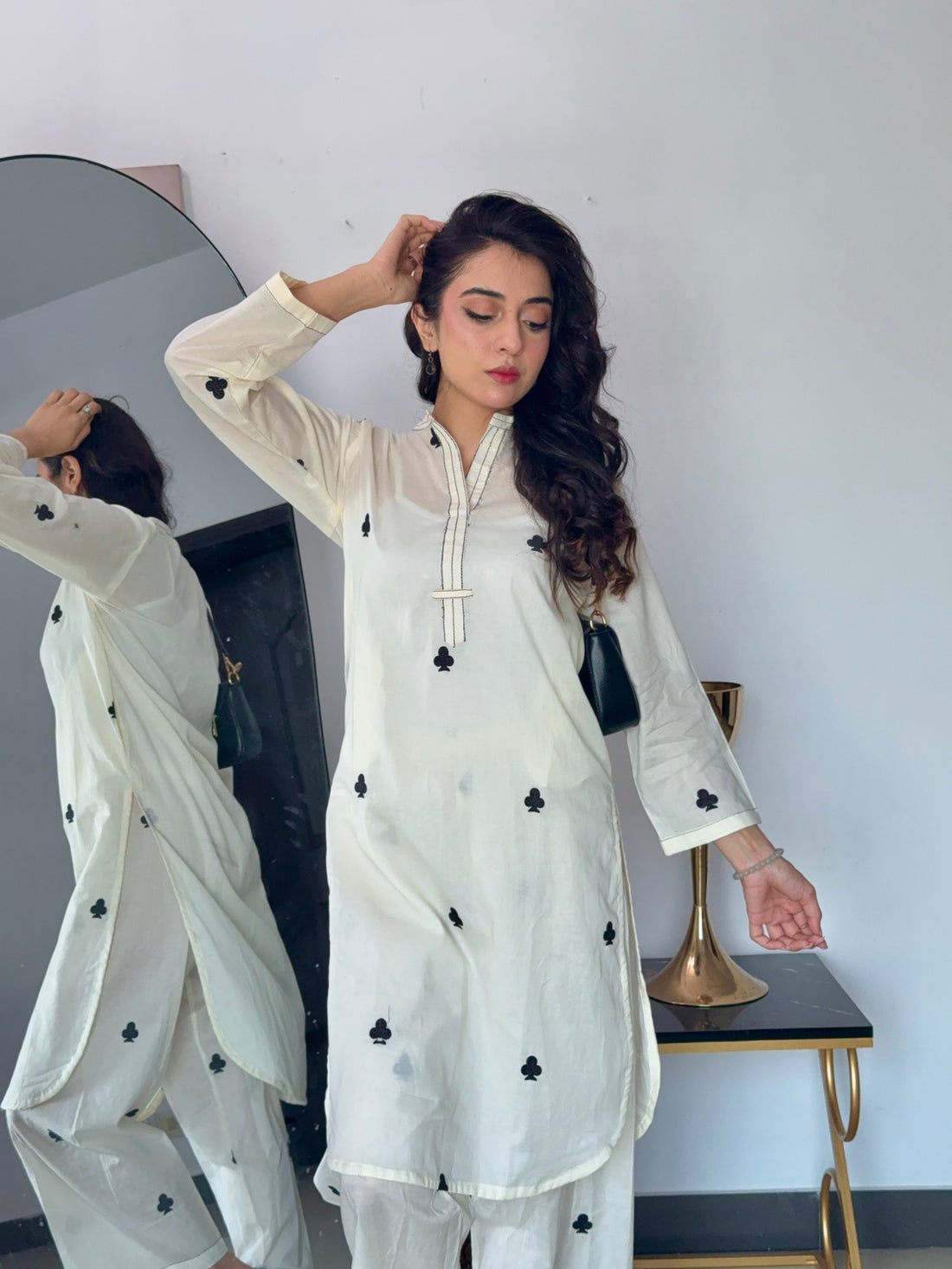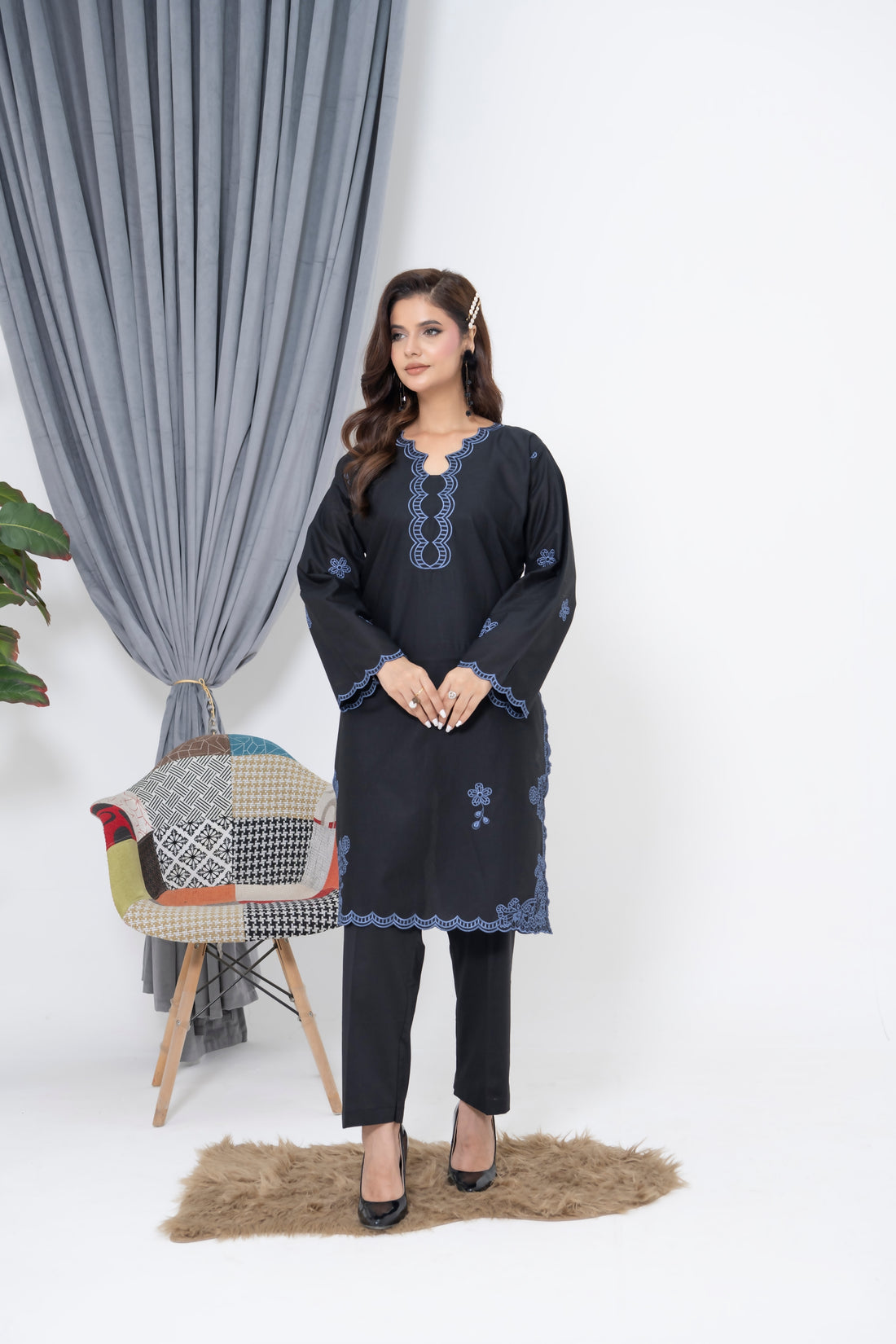 S-602 2PC Cotton Stitched Back Embroidered Shirt with trouser