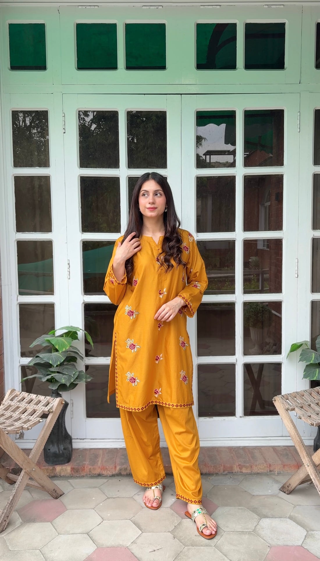 S-605 2PC Lawn Stitched Mustard Embroidered Shirt with Trouser