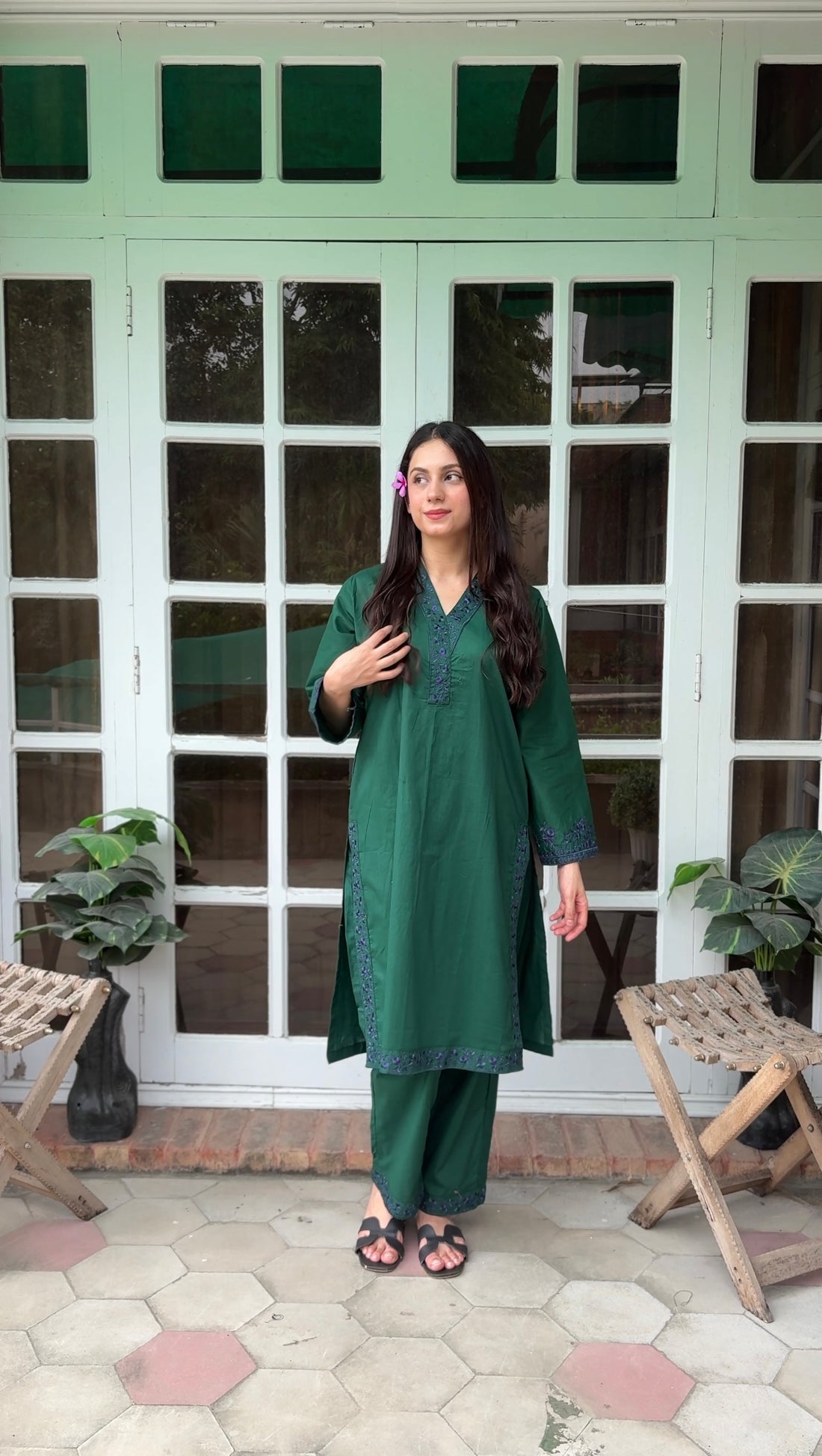 S-606 2PC Cotton Stitched Emerald Green Shirt with Trouser