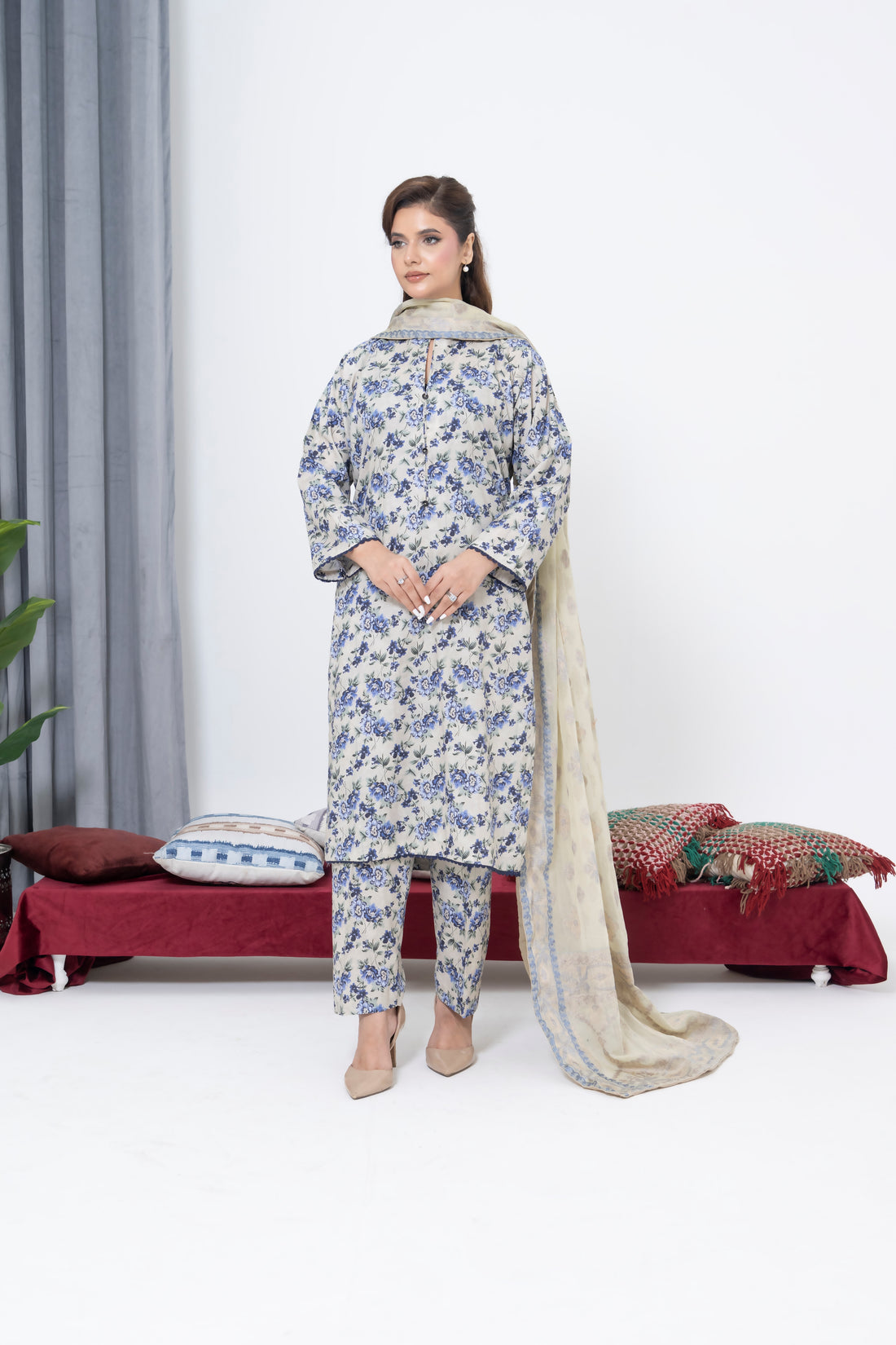 S-506 3PCS Lawn Printed Dress With Jacquard Dupatta