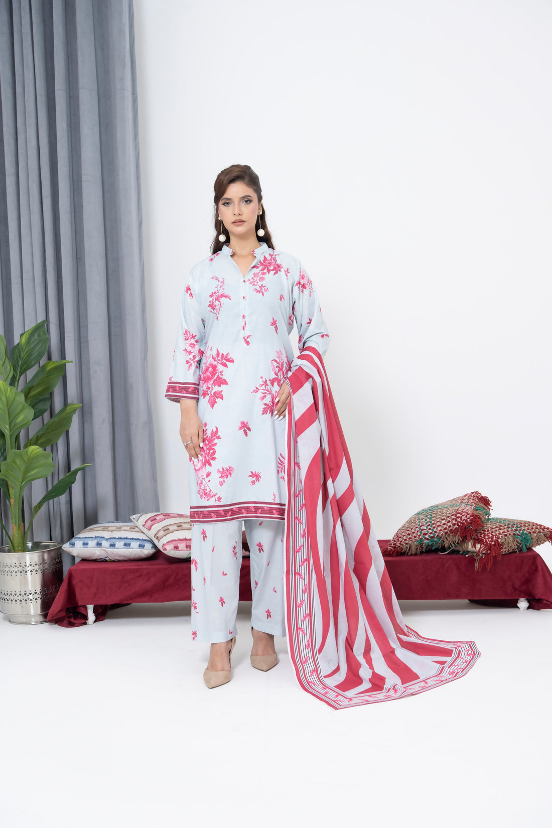 S-510 3PCS Lawn Printed Dress With Lawn Dupatta