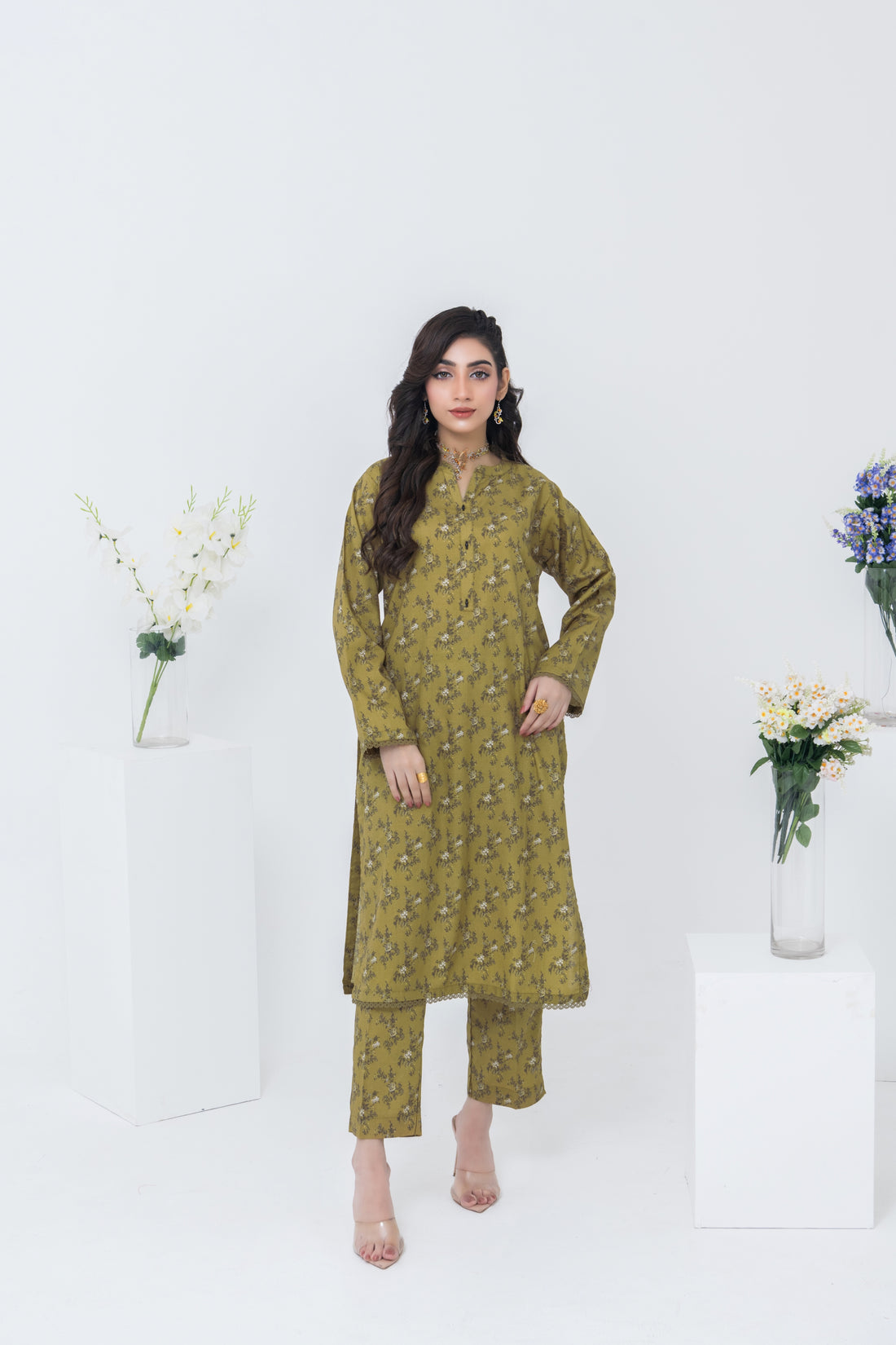 FW24-107 GREEN 2PCS EMBROIDERED KURTA WITH TROUSER