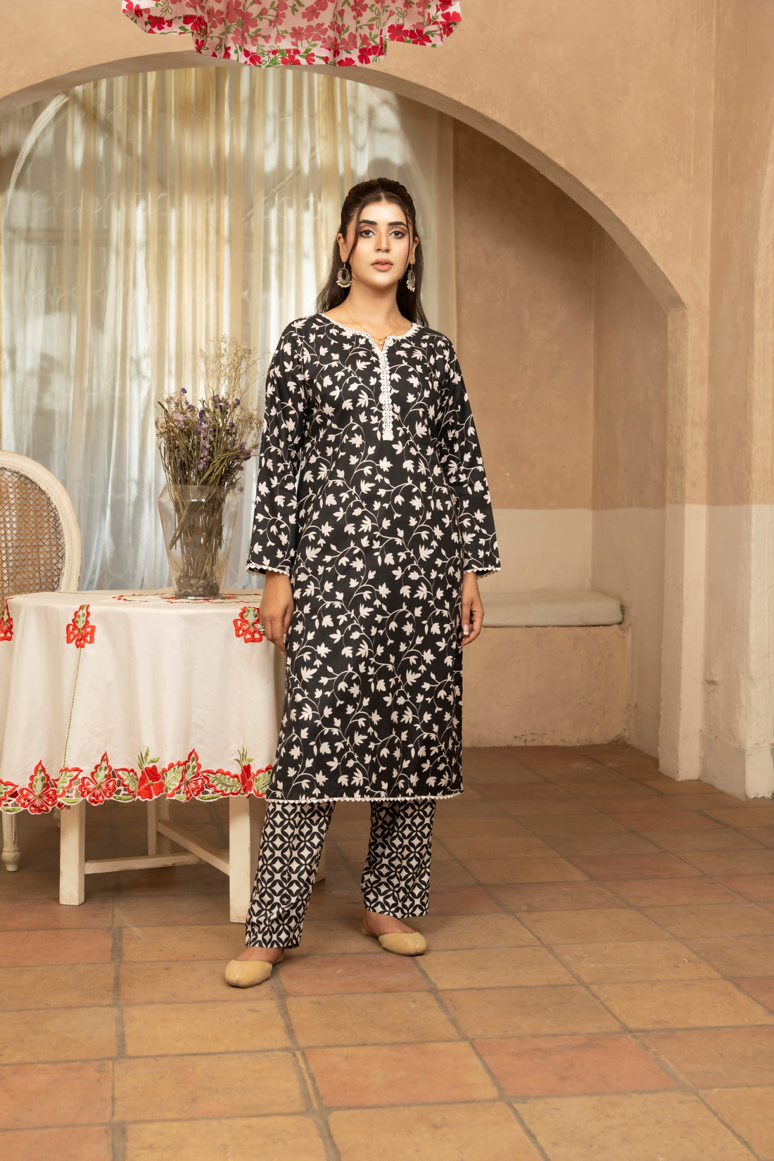 FW24-112 T-PINK 2PCS EMBROIDERED KURTA WITH TROUSER