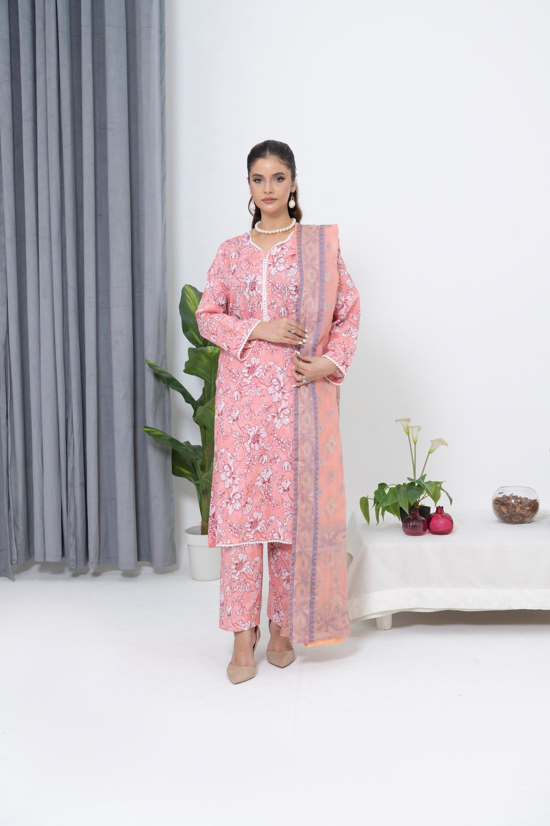 S-502 3PCS Lawn Printed Dress With Jacquard Dupatta