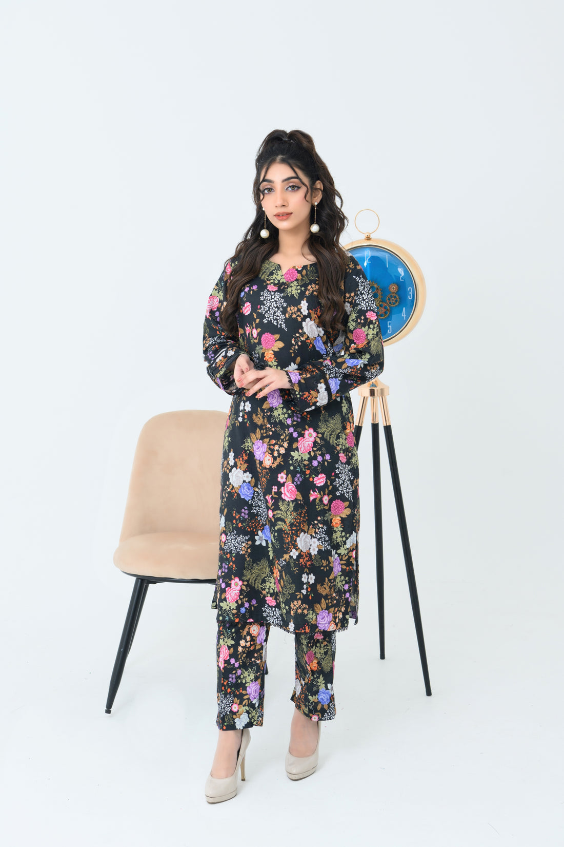 FW24-101 BLACK 2PCS EMBROIDERED KURTA WITH TROUSER